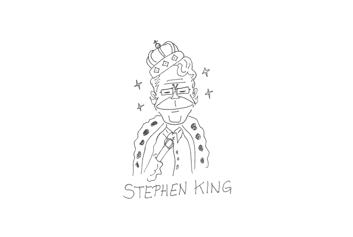 Nos meus trabalhos costumo usar as minhas vivências como elemento principal: situações cotidianas, pessoas que encontro, alguma série ou livro que esteja lendo. Tudo o que observo acaba virando material para alguma charge ou quadrinho, usando o humor ou a ironia como ingrediente. As charges a seguir vêm de uma conversa entre amigos a respeito dos trocadilhos possíveis com o sobrenome do escritor Stephen King.