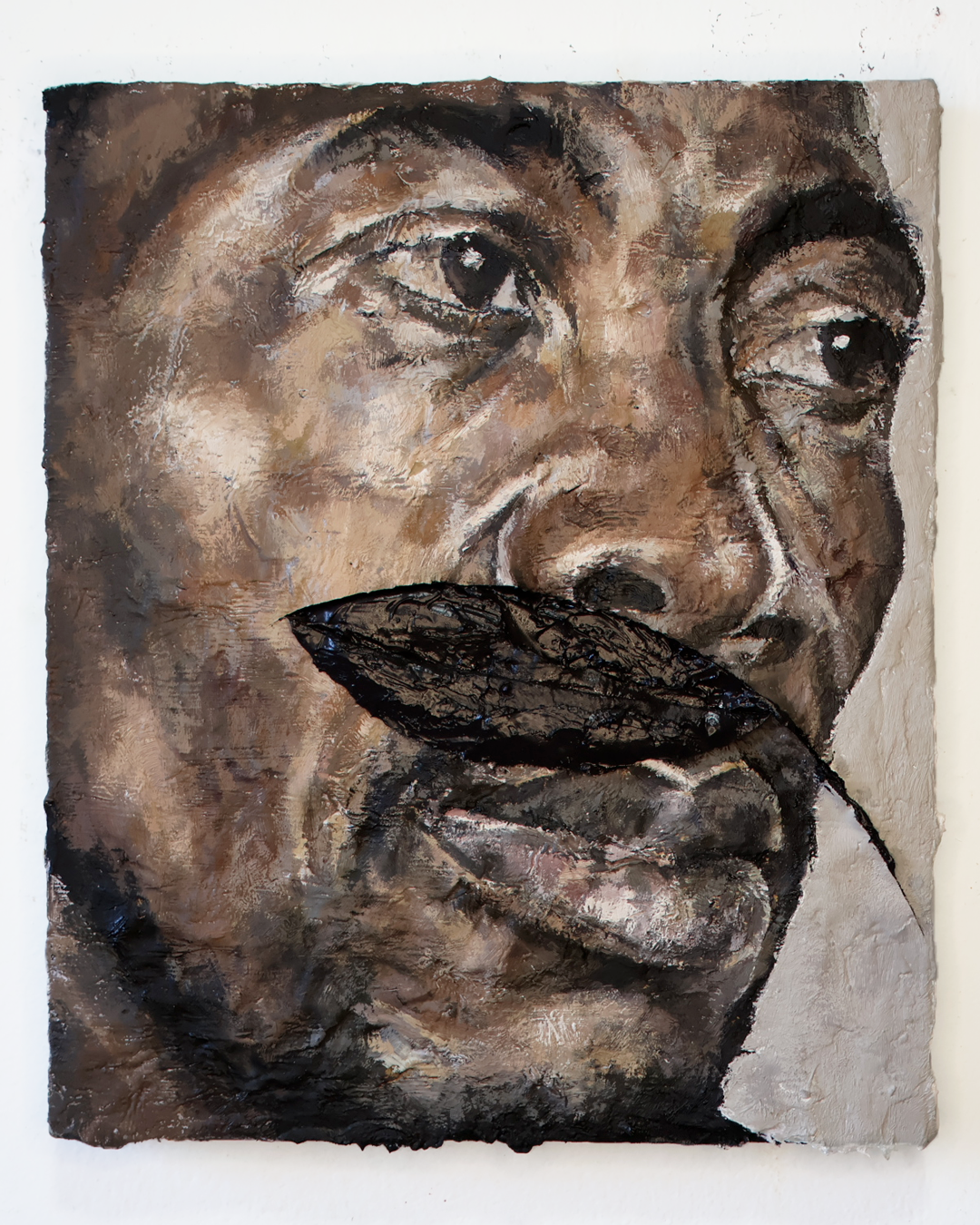 Corpo, identidade e materialidade compõem esta seleção de obras do artista paranaense Gustavo Magalhães, que produz e estuda pinturas há mais de uma década. Cada uma das peças coloca estes elementos em diálogo e evidenciam, através da própria linguagem artística, a intenção do autor: a recusa em limitar-se às expectativas formais do chamado "espaço representacional negro”, conceito cunhado pelo crítico de arte norte-americano Darby English.