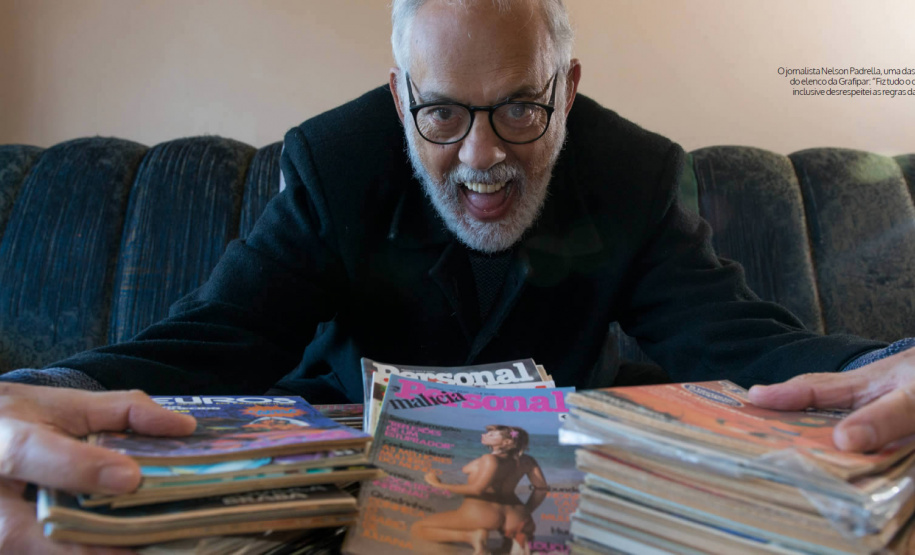 “O Faruk vivia ‘na mão’, às voltas com os humores dos militares. Para nós era só alegria. Ganhei um bom dinheiro pelo meu trabalho. Fiz tudo o que queria, inclusive desrespeitei as regras da censura”, conta o jornalista e pintor Nelson Padrella — uma das estrelas da Grafipar. Padrella é carioca, criado em Palmeira, nos Campos Gerais — “para onde meus pais me sequestraram”. Merece o título de enfant terrible da imprensa local. Escreve pra diabo, desenha tanto quanto, tem humor, fartas referências culturais e veneno nos caninos. Era assim desde moço, quando estreou na imprensa já no posto de “avançado demais” para os limites da província. “O senhor é rosa-choque?”, teria lhe perguntado um dos publishers da cidade, em busca de uma cor que o traduzisse. A psicodelia mexia com a visão, sabe-se.